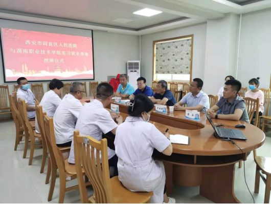 阎良区人民医院经理惠增龙为渭职院一行介绍了医院的发展历程、现状、规划等,他表示,希望双方以此次建立实习就业基地为切入点,借助阎良区人民医院在医疗服务实践工作中的独特优势,总结和提炼医疗教学模式与人才培养,与k8凯发旗舰厅强强联合,不断拓展和深化双方在科学研究、人才培养输送等方面的合作内容,助力k8凯发旗舰厅医学类的团队建设、人才培养和生源就业,最终实现双方共赢。