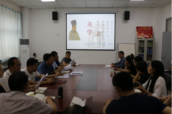 随后,他以张载的“关学”为主线,分享了关学思想的产生、发展。重点解读了“为天地立心、为生民立命、为往圣继绝学、为万世开太平”、“民胞物与”、“天人合一”的关学思想,把宋代爱国知识分子张载的家国情怀、使命意识、担当精神呈现给大家。他讲到,学习和发扬“关学”文化内涵,就是要以张载“躬行礼教”、“敦本尚实”的关学思想提高自己的品格修养,传承其重使命、崇道德、求实用、尚气节、贵兼容、敢担当的优秀品质。在全党开展党史学习教育的当下,作为党的干部,我们一定要在习近平新时代中国特色社会主义思想的指导下,把党史学习教育和中华优秀传统文化学习结合起来,“内化于心,外化于行”,不断提升自身素质和党性修养,筑牢责任意识和担当精神,做到爱岗爱校,对党忠诚。