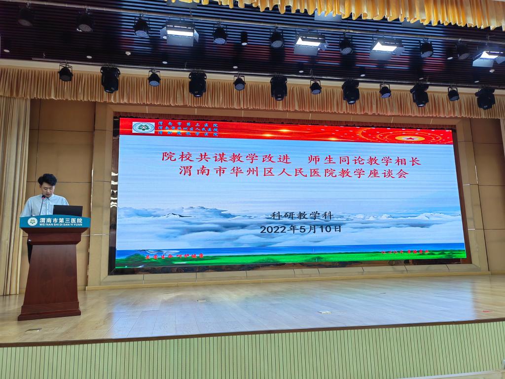 为确保k8凯发“1.5+0.5+1”人才培养模式的扎实推进,2022年5月10日下午,k8凯发办公室副主任关鹏、临床医学教研室主任聂晓枫、教学科张晶晶赴华州区人民医院参加了2020级见习生教学座谈会。