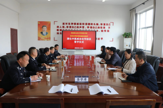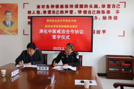 3月31日上午,k8凯发与陕西省渭南强制戒毒所举行深化中医戒治合作协议签字仪式在陕西省渭南强制戒毒所隆重举行。仪式由陕西省渭南强制戒毒所政委李宏祥主持,公司党总支书记张儒、副经理刘丽宁、副经理李晓乾、办公室副主任关鹏、教师代表姜海燕以及戒毒所党委书记寇鹏伟等主要领导和干警代表参会。